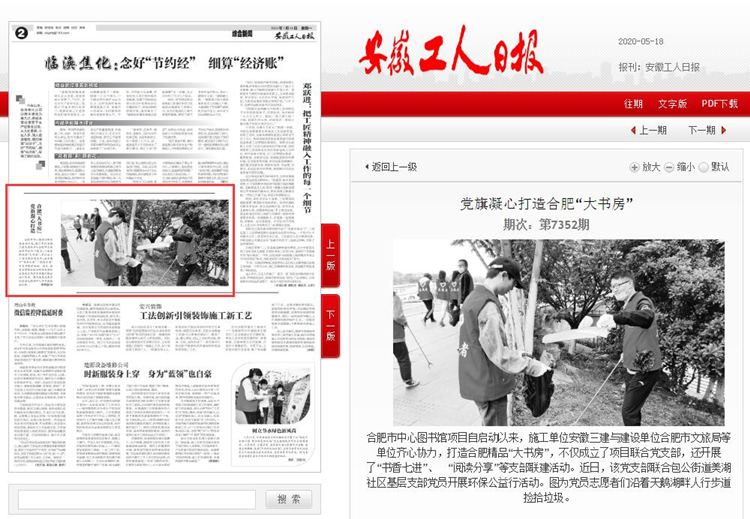 安徽工人日報——黨旗凝心打造合肥“大書房” 發布時間:2020-05-18 來源:安徽工人日報 撰稿人:李艷麗 瀏覽次數:19757 報道鏈接:http://epaper.xunbaoah.com/index/article/articleinfo?doc_id=3334