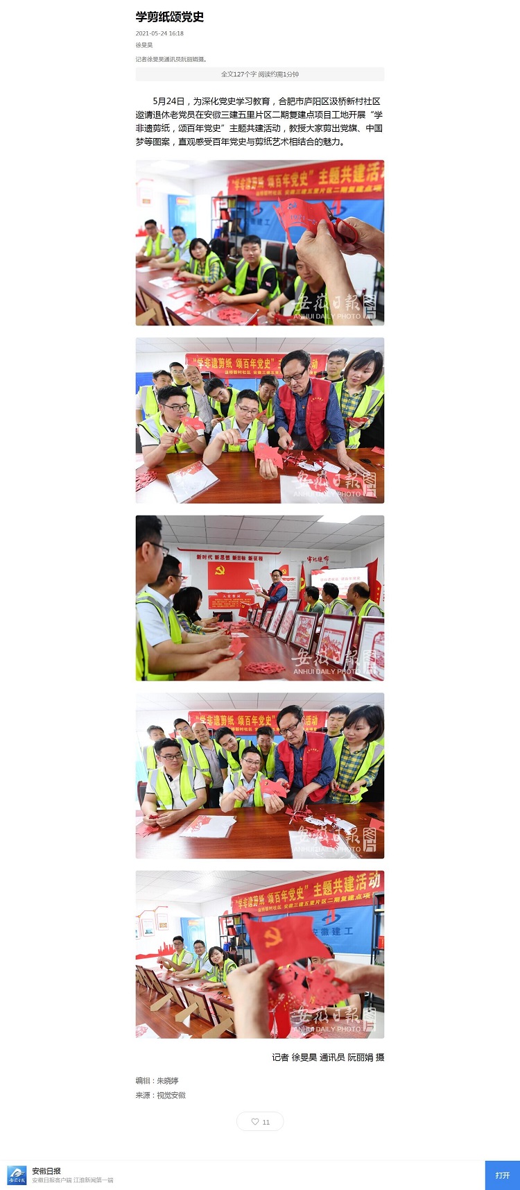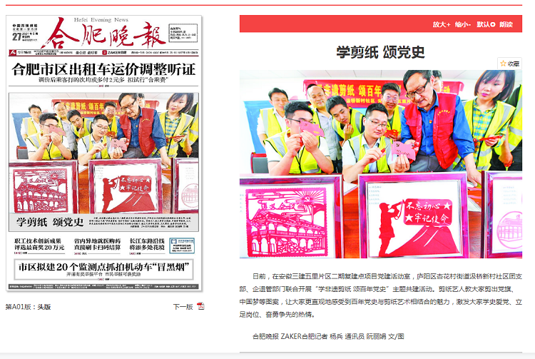 安徽日?qǐng)?bào)、合肥晚報(bào)、安徽日?qǐng)?bào)公眾號(hào)——學(xué)剪紙頌黨史