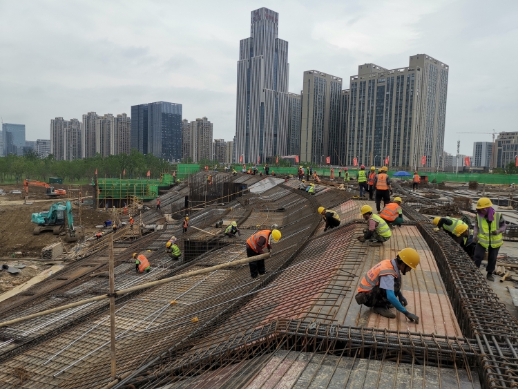 報道中指出,隨著園博會的日益臨近,項目近500名建設者端午期間仍然堅守在各自的崗位上,爭分奪秒進行主體施工,確保工程如期交付。