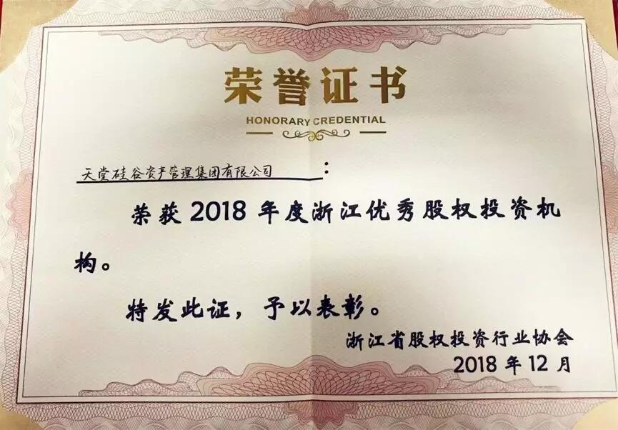 12月20日,2018年度會員大會暨“攜手譜新篇”浙江股權投資行業(yè)高峰論壇在新僑飯店隆重舉行。天堂硅谷憑借2018年在投資領域的優(yōu)異成績,以及對助力實體經濟發(fā)展做出的貢獻榮膺優(yōu)秀投資機構榮譽稱號。