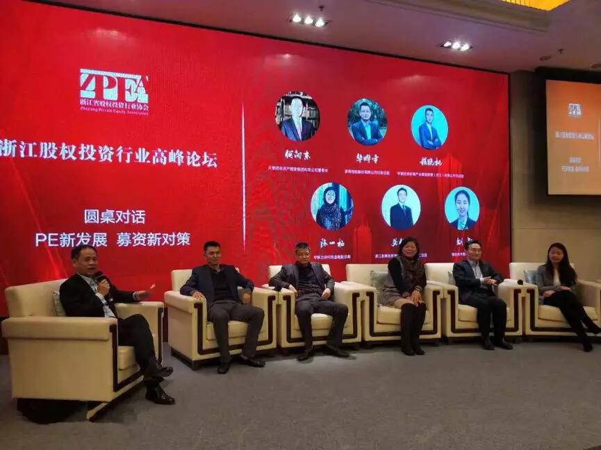 在圓桌沙龍環(huán)節(jié),我司何董作為“PE新發(fā)展、募資新對策”沙龍主持人對話中銀投資浙商產業(yè)基金總經理錢曉楓、浙商創(chuàng)投行政總裁華曄宇、中新力合副總裁陳一梅、浙商創(chuàng)新資本總經理龔伯勇、